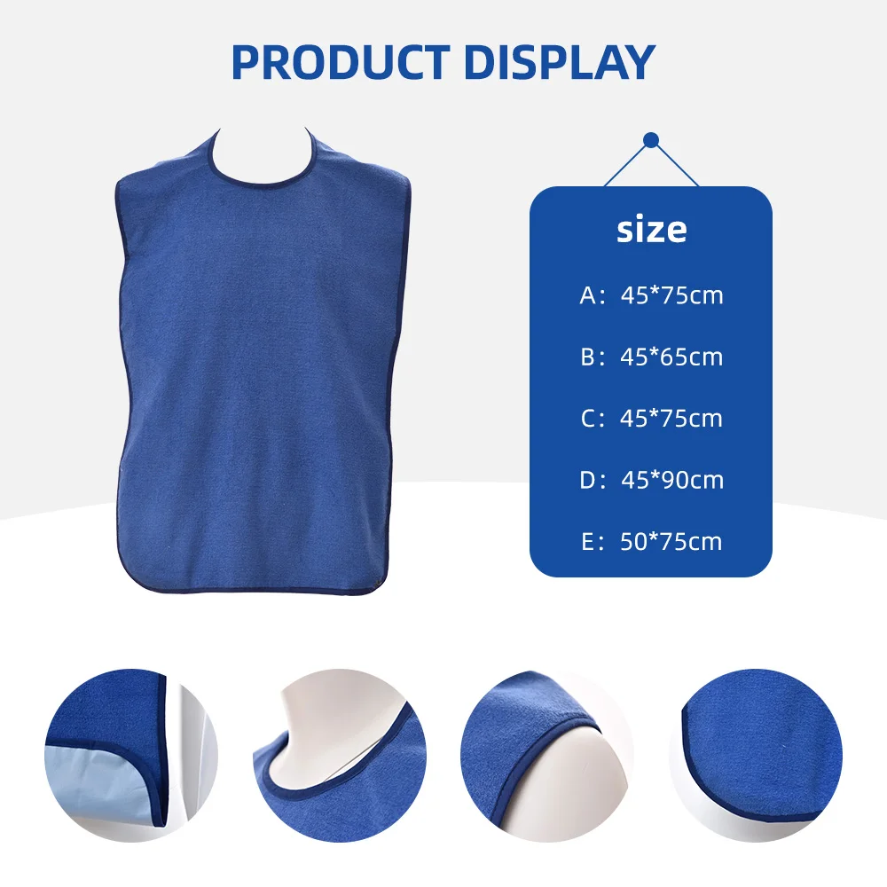 Heavy Duty Terry Washable Waterproof Latex-Free Hook Loop Closure Poly Vinyl Adult Bib Fashionable Reusable Durable for Patients