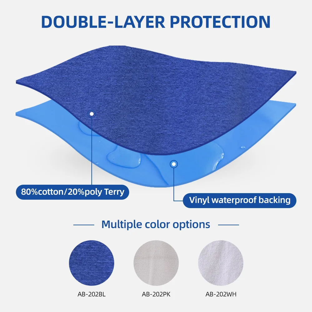 Material: | 1. 80%cotton/20%poly Terry 2. Vinyl waterproof backing 3. Binding edges 4. Snaps closure | |||