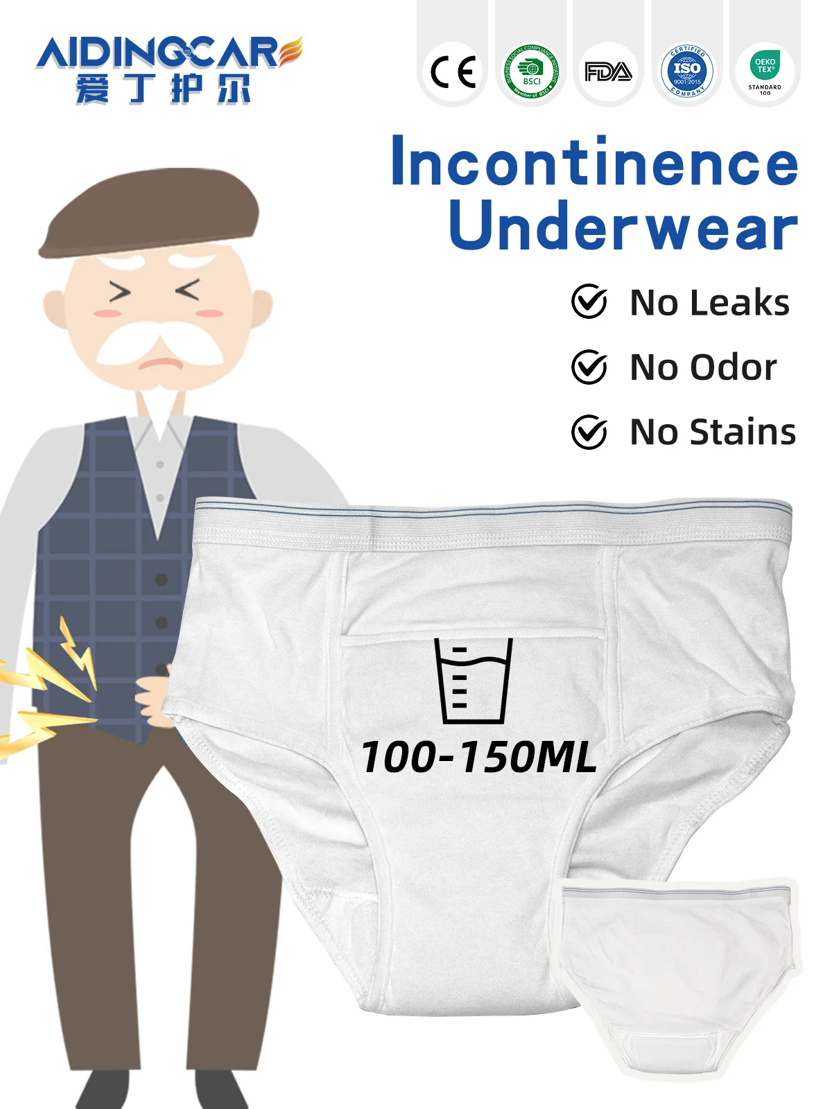 Men's Incontinence Underwear Eco-Friendly Recyclable Sensitive Skin Suitable Strong Absorption Fast Absorption Large Capacity