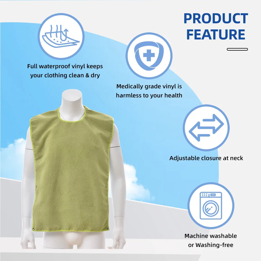 Wholesale Washable Reusable Latex-free Adult Waterproof Bibs with Terry Fabric for Elderly Care Unisex Design