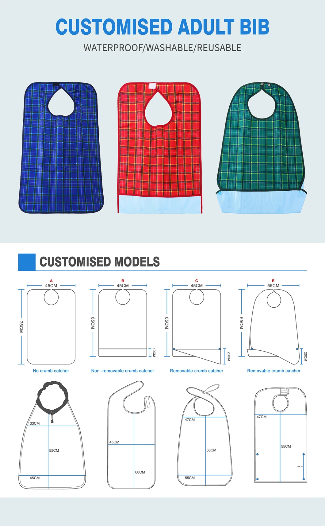 AB-2139 Product Name: | Adult Bib with Optional Crumb Catcher | |||